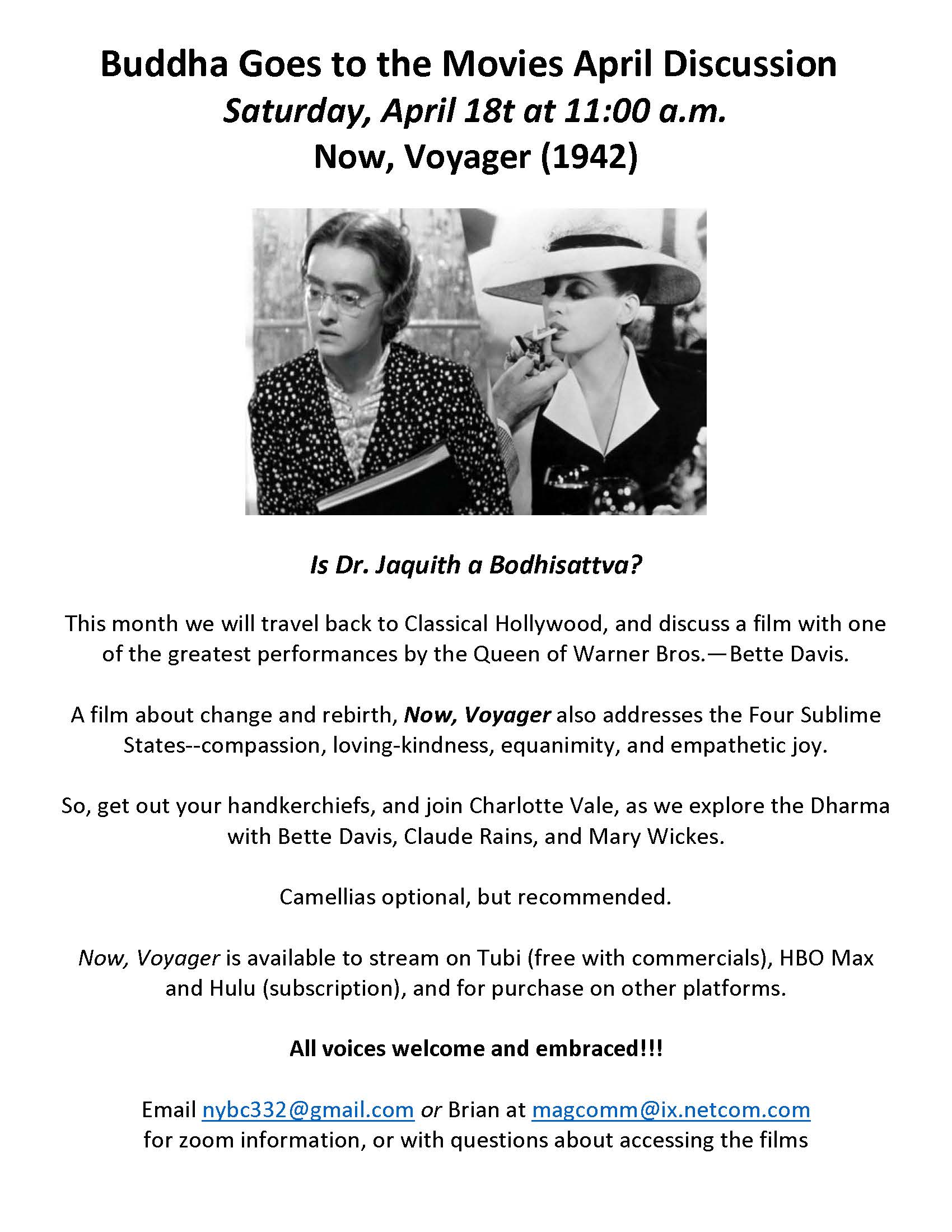 11-12pm Buddha Goes to the Movies: "Now Voyager" for details and flier click here